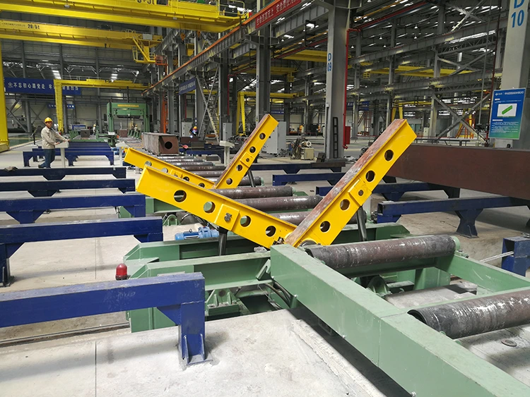 दुई पीसी चुटाउ 1 ° 0 ° हाइड्रोलिक बीम फ्लिपरहरू प्रत्येक सेटमा प्रदान गरिन्छ, मुख्यतया एक तर्फबाट वेल्डिंग पछि प्रयोग गरिन्छ। जब काम गर्दै, रोलर तालिका वा कार्पापीन्जा रिकोबाट टाढा छनोट गर्नुहोस्, र सॉलर तालिका वा कार्चापीस रैकको छेउमा सार्नका लागि दुई पल्ट पट्टिप्राइनिंग कोष्ठकहरू लगाउन। त्यसो भए, दुई हाइड्रोलिक सिलिन्डरले दुई l-आकारको हतियातलाई सार्नुहोस् सि nch ्क्रोनसँग घुमाउन ड्राइभ गर्नुहोस्। वर्कपिस पल्टाइन्छ, यो रोलर तालिका वा कार्पापीस र्याकको बीचमा सारिन्छ, र त्यसपछि वर्कपिस अर्को प्रक्रियामा यातायात वा वेल्ड गरिएको हुन्छ।
